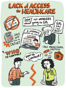 Live illustration: seasonal agricultural workers lack of access to healthcare (En)
